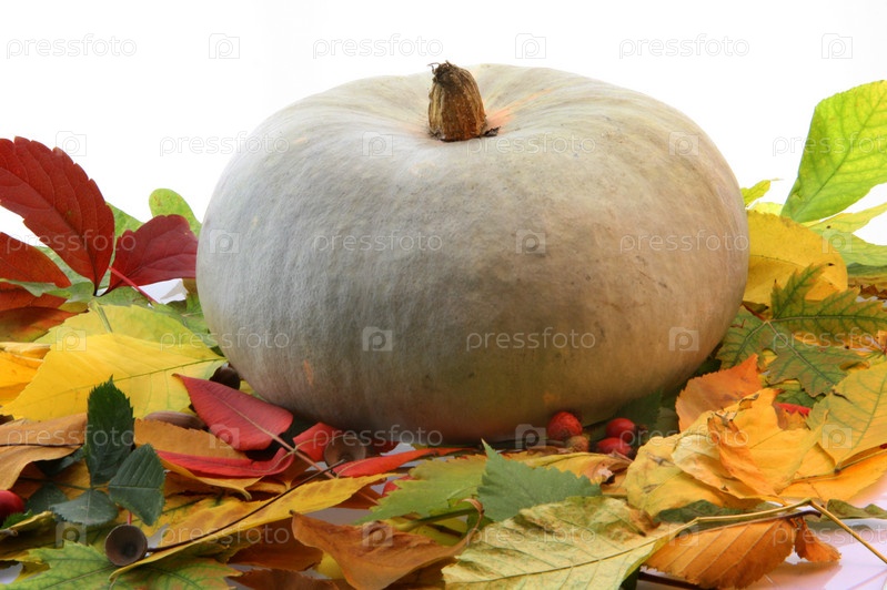 Осенние листья и тыква, натюрморт