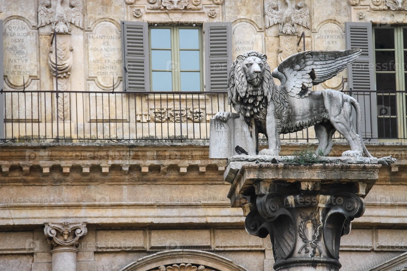Колонна со статуей льва. Верона, Италия