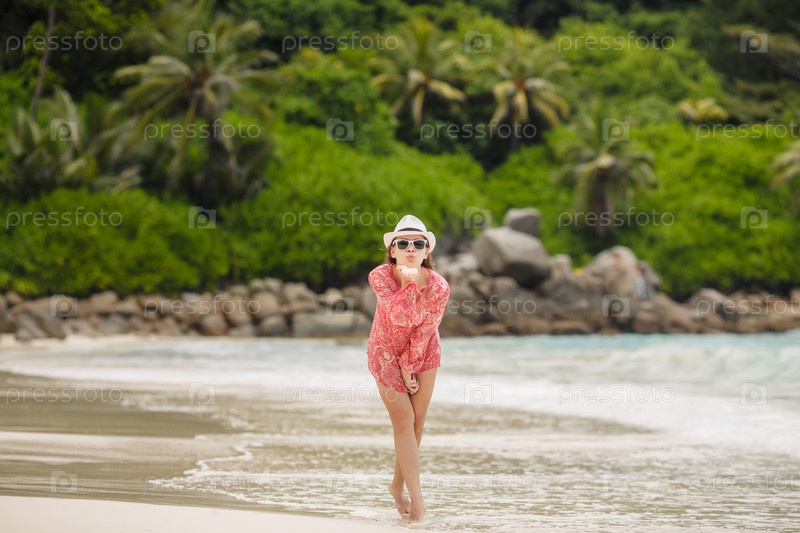 Девушка отдыхает на берегу Индийского океана