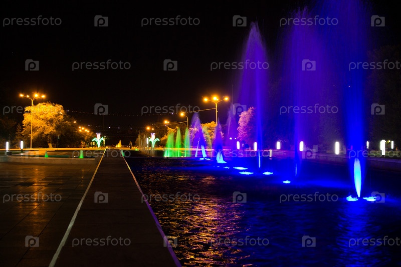 Ночные фонтаны с подсветкой