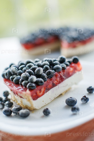 Кремовый пирог со свежей черникой и малиной