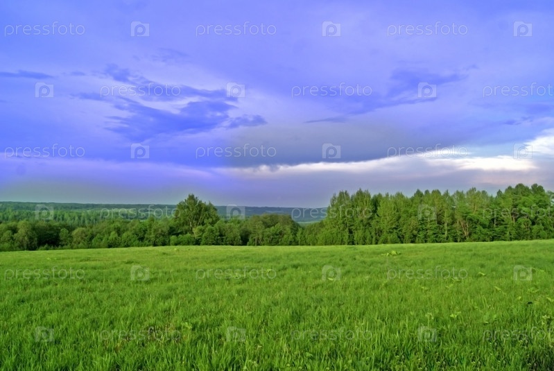 Зеленое поле и грозовое небо