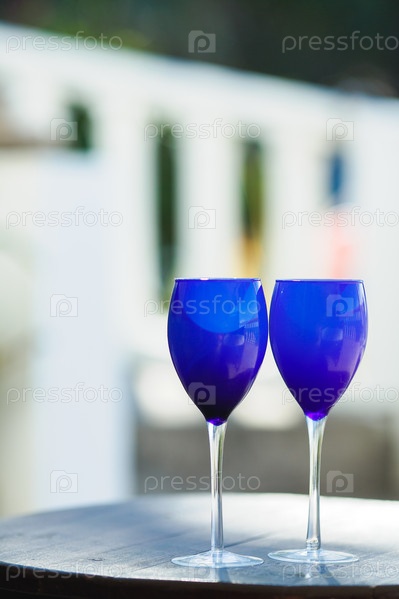 Два синих бокала на столе