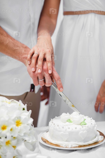 Молодожены режут торт