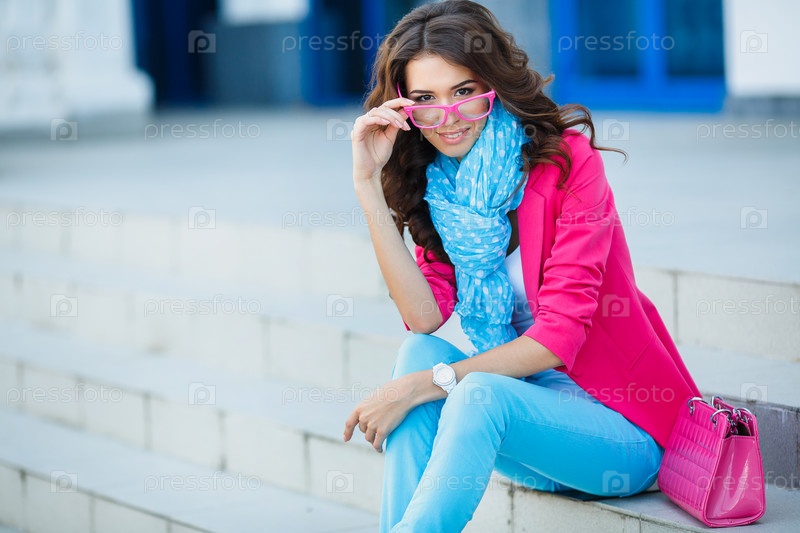 Девушка сидит на лестнице