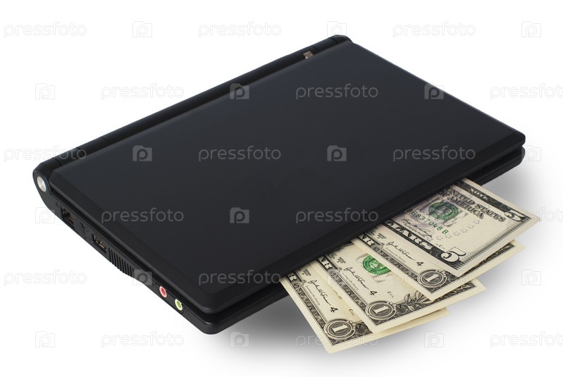Несколько долларов США в ноутбуке на белом фоне
