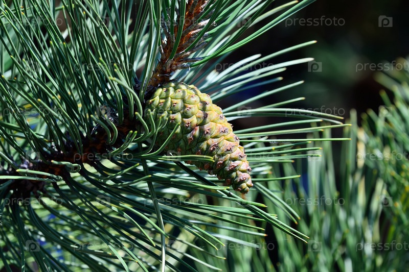 Горная сосна, рinus mugo, шашка и пихта в крупном плане
