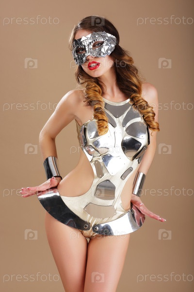 Женщина в металлическом костюме