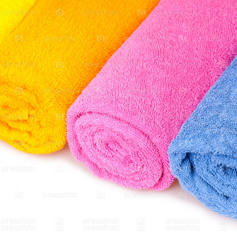 Цветные полотенца крупным планом на белом фоне