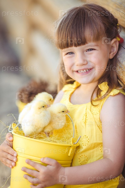 Маленькая девочка с цыплятами