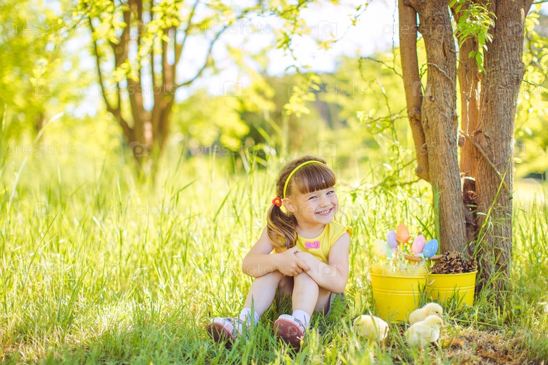 Маленькая девочка с цыплятами