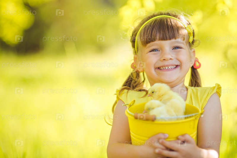 Маленькая девочка с цыплятами
