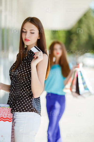 Две молодые женщины в торговом центре