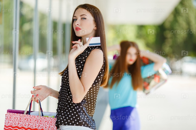 Две молодые женщины в торговом центре