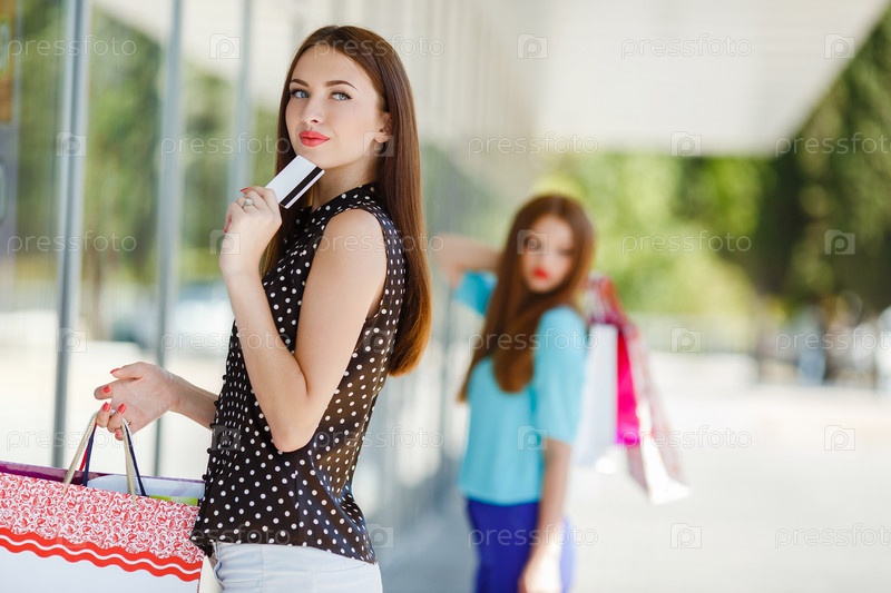 Две молодые женщины в торговом центре