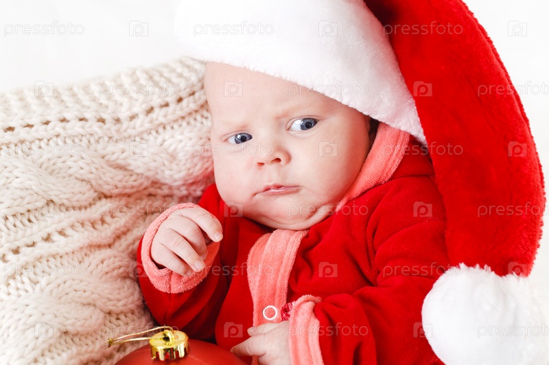 Маленький ребенок в рождественском колпаке