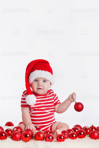 Маленький ребенок в рождественском колпаке