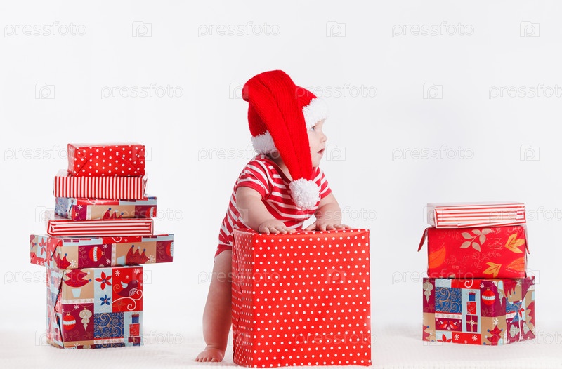 Маленький ребенок в рождественском колпаке
