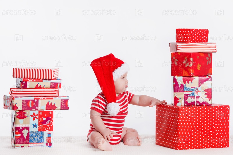 Маленький ребенок в рождественском колпаке