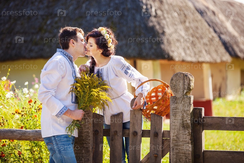Молодая пара в украинской одежде на улице