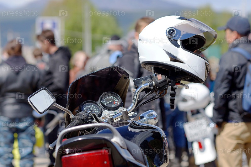 Шлем на руле мотоцикла