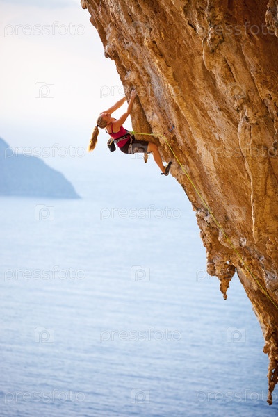 Скалолаз на скале. Остров Калимнос, Греция