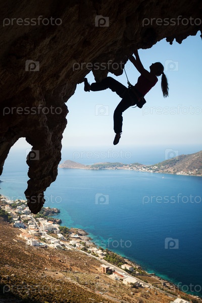 Скалолаз на скале. Остров Калимнос, Греция