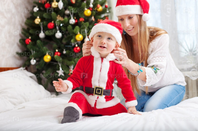Мать с сыном в костюме Санты