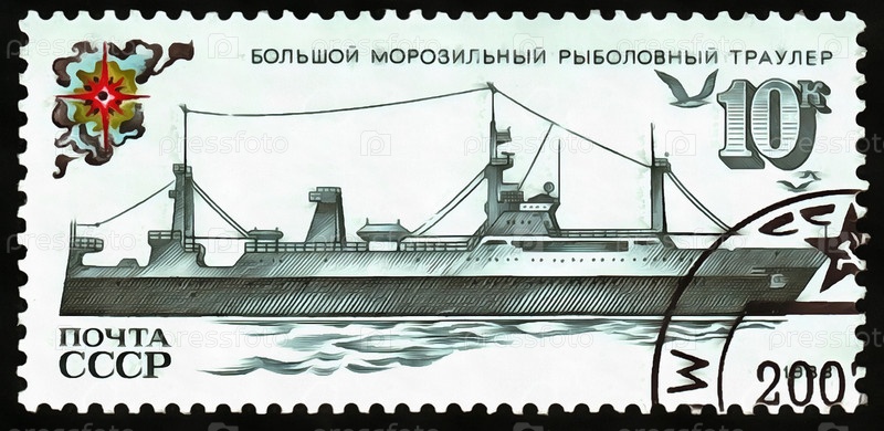 Почтовая марка ссср 1988 года, большой морозильный рыболовный траулер