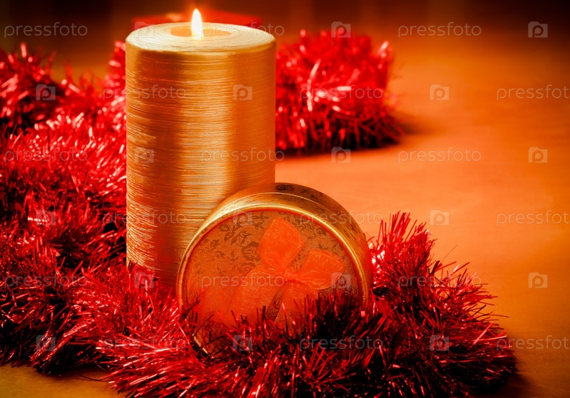 Свеча, коробки и мишура