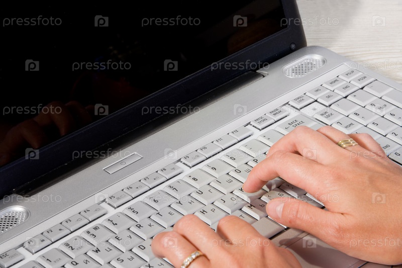 Женские руки, печатающие на ноутбуке