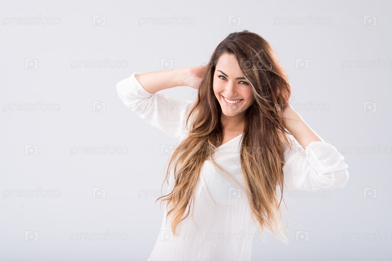 Красивая молодая женщина на светлом фоне