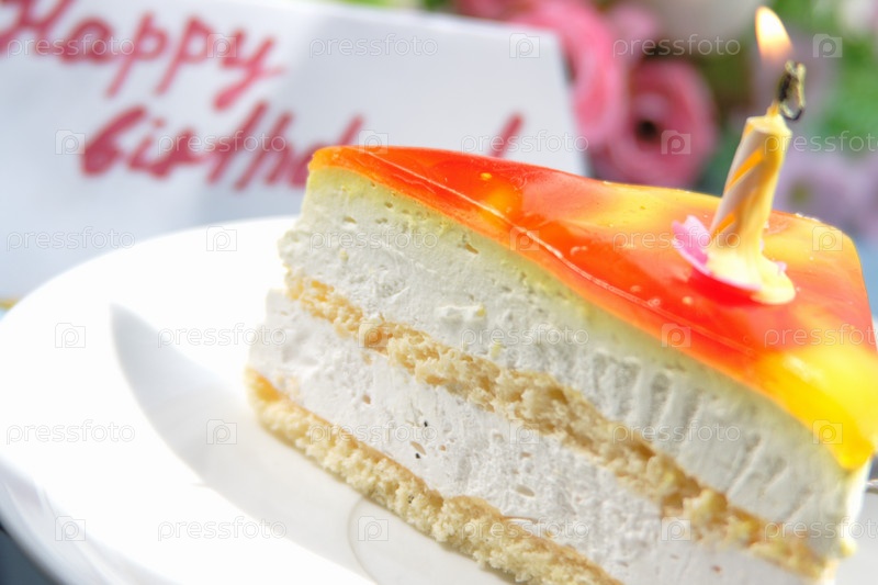 Кусочек торта со свечкой