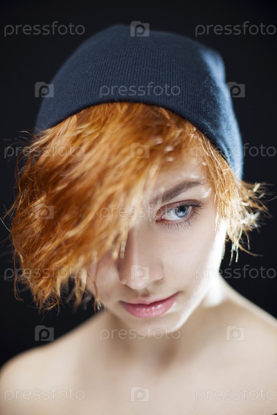 Молодая женщина позирует на черном фоне