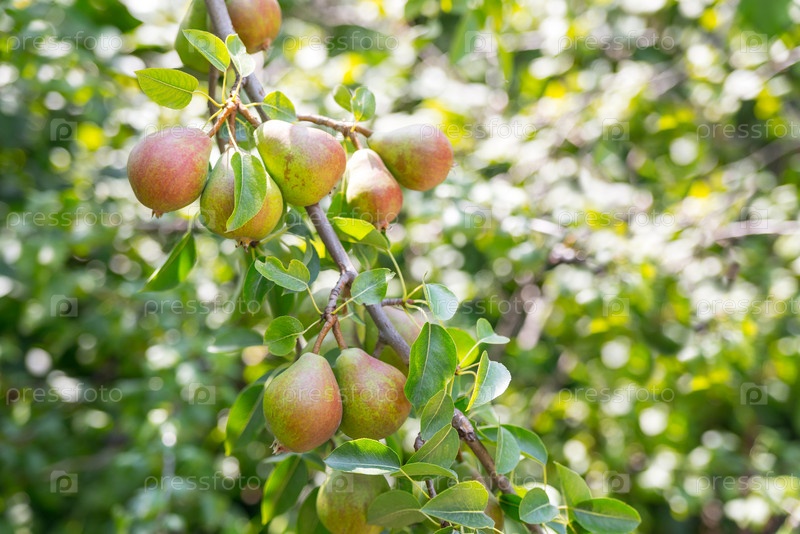 Спелые груши на ветке в саду