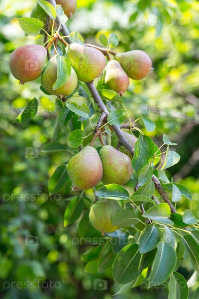 Спелые груши на ветке в саду