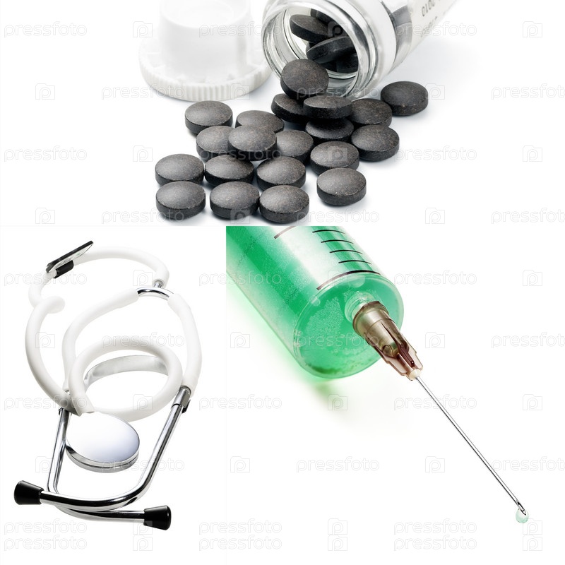 Медицинские инмтрументы и таблетки, коллаж