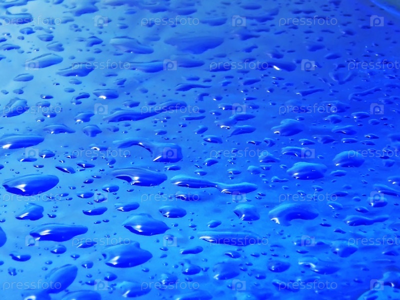 Капли воды на синей поверхности