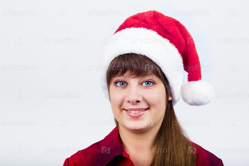 Голубоглазая женщина в новогодней шапке