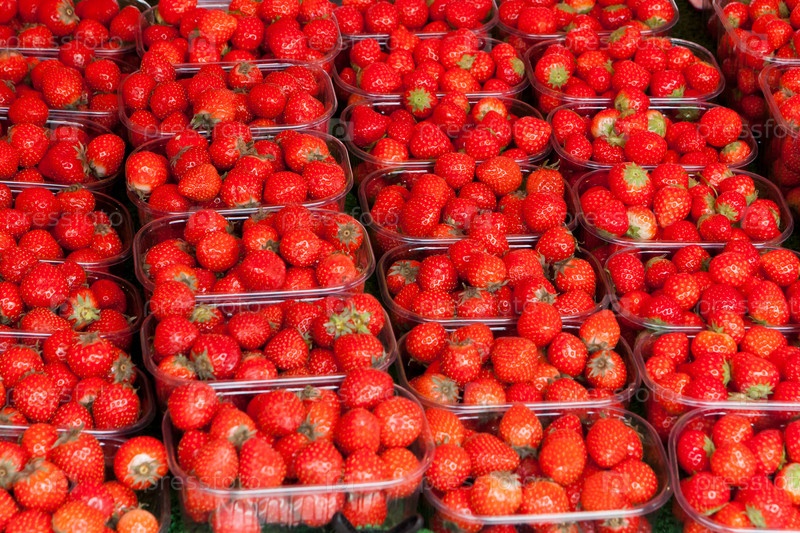 Контейнеры с клубникой на витрине