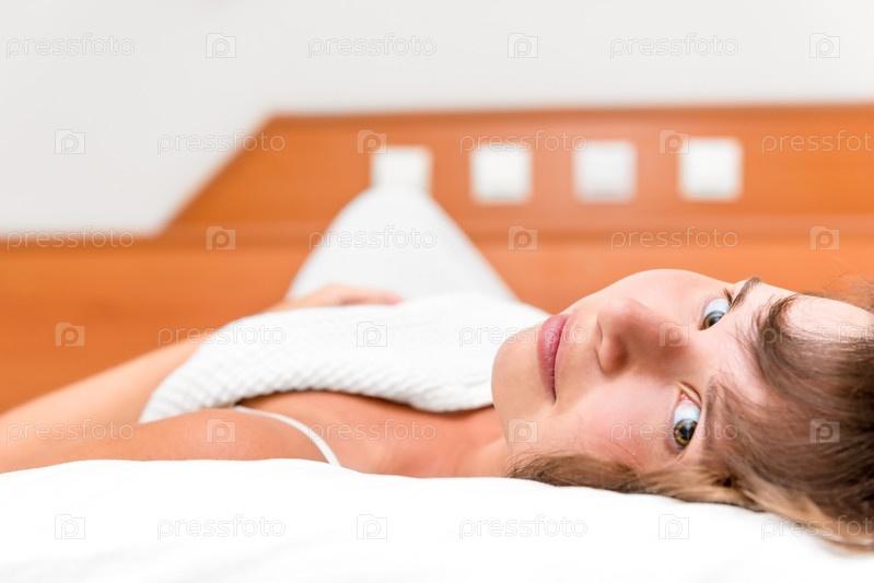 Улыбающаяся девочка в постели под одеялом