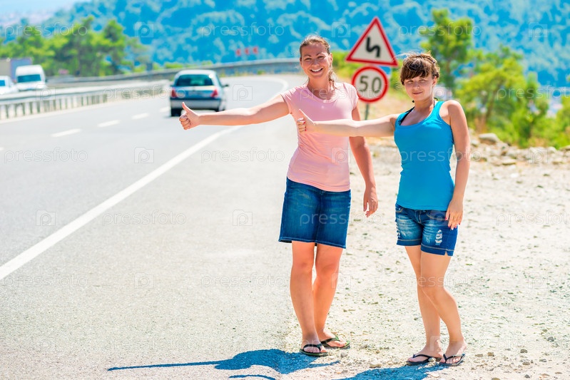 Две женщины путешествуют автостопом