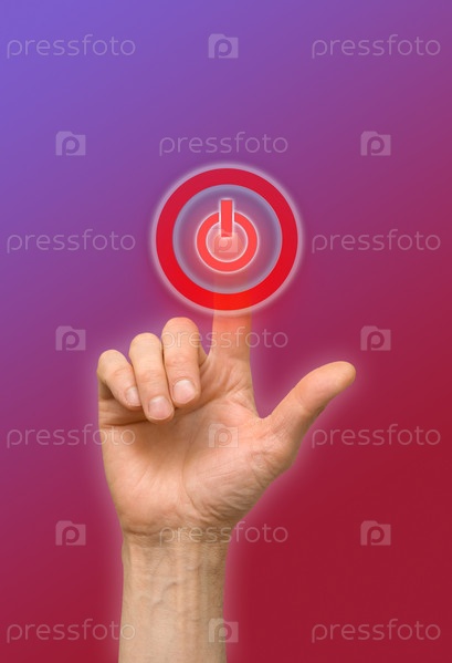 Рука нажимает на иконку включения на сенсорном экране