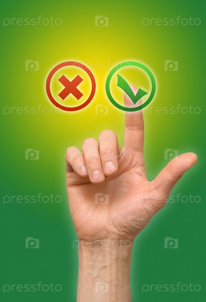 Рука нажимает на кнопку на сенсорном экране