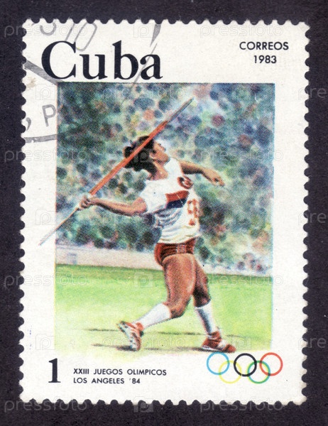 Почтовая марка Кубы, метание копья