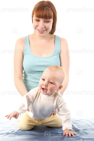 Мама с малышом на белом фоне