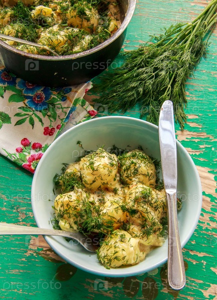 Отварной картофель с зеленью и сметаной