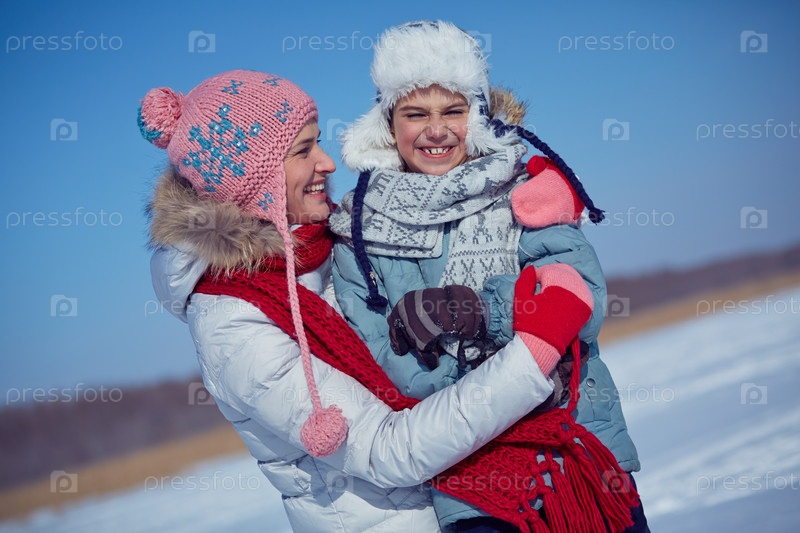 Женщина с сыном на свежем воздухе
