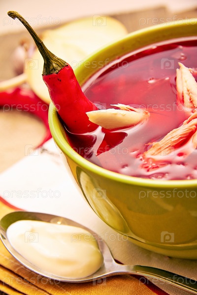 Домашний суп с красным перцем в чашке
