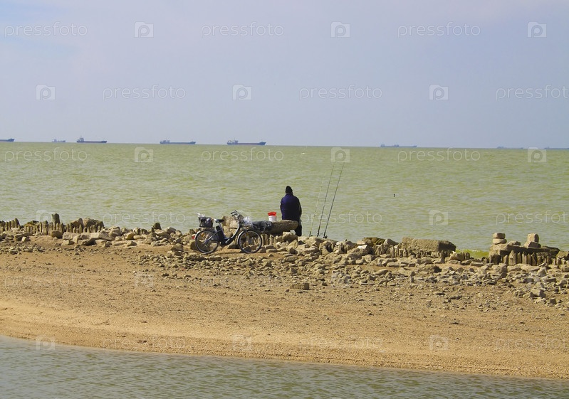 Одинокий рыбак на песчаной отмели
